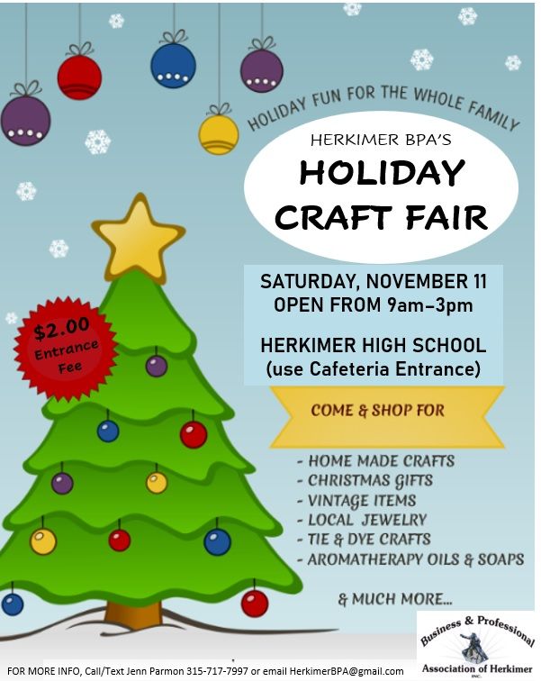 Herkimer BPAs Holiday Craft Fair Herkimer High School November 11, 2025, 100 reservoir road, herkimer, ny.